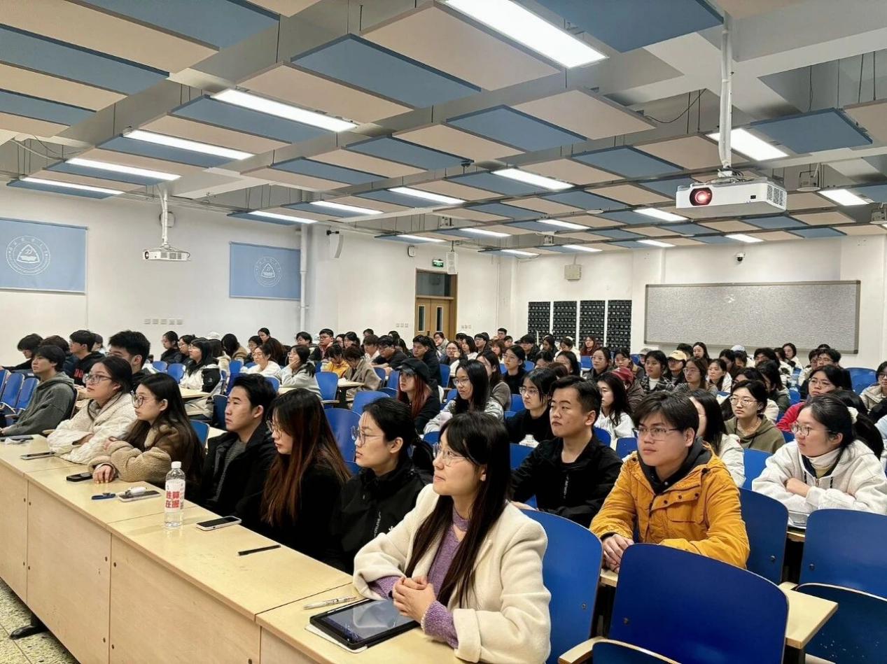 魏健结合党的二十大报告中对教育的论述、高等教育发展规律,阐释了学校第四次党代会“1149”发展战略的中心思想和主要内容,并介绍了学院在人才培养、科学研究、社会服务等方面落实党代会精神的工作思路和做法,尤其是围绕学生培养树院风、抓学风、建班风,积极拓展实习实践资源和机会。他强调好青年应具备有理想、敢担当、能吃苦、肯奋斗的重要品质,号召同学们保持学习热情、培养批判精神,注重感悟和践行,师生同向,共同努力推进学校发展和自身成长。