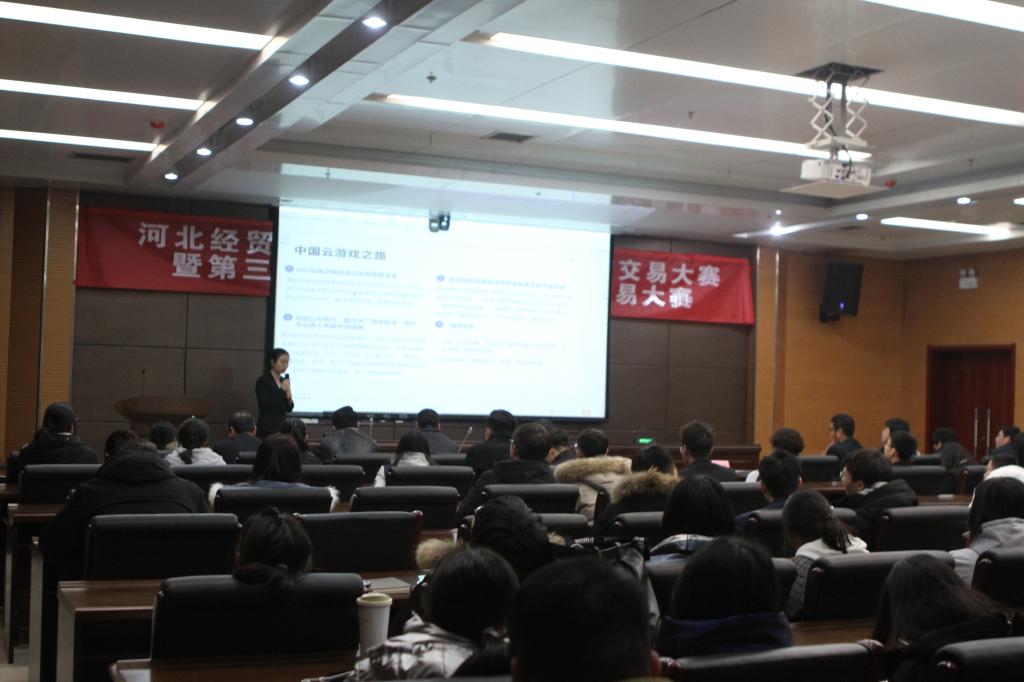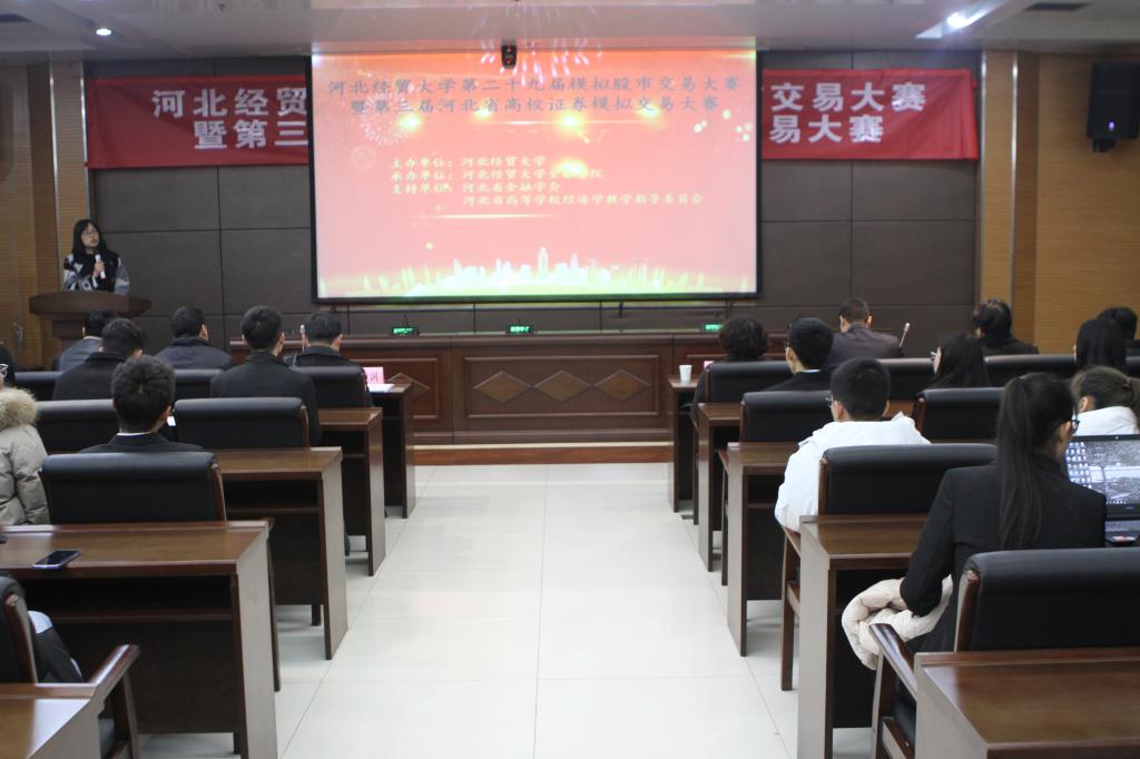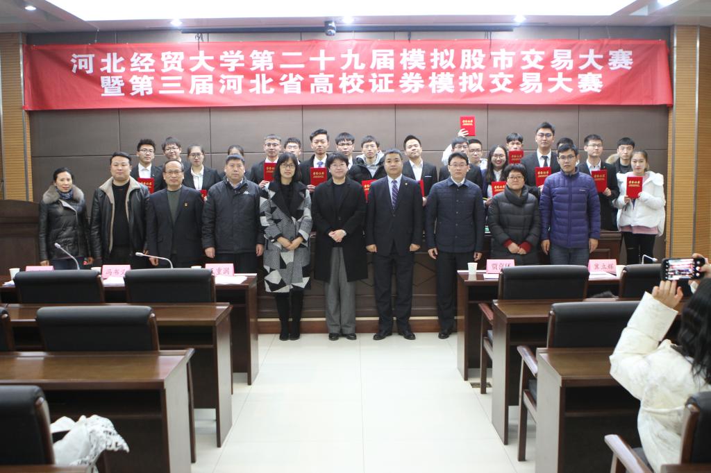 第二十九届模拟股市交易大赛暨第三届河北省高校证券模拟交易大赛团体赛决赛及颁奖仪式在第三会议室顺利举行,来自河北工业大学、石家庄铁道大学、河北地质大学、华北理工大学、abw087