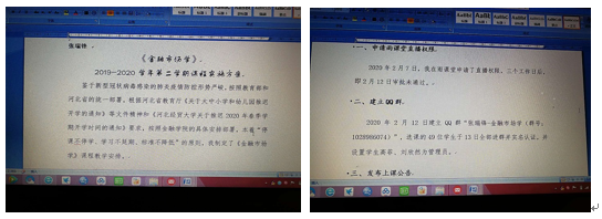 教师陆续展开各类在线课程平台教学、直播教学以及混合式等多种教学方式。如闫福教授的《公司金融》通过开通QQ直播间授课,蒋超楠老师的《金融学》采用经贸学堂在线与QQ直播混合的教学模式,李建英教授的《投资项目评估与管理》课程采用中国大学MOOC平台与QQ视频相结合的模式,王风华老师的《银行实务》课程采用在线辅导+智盛智慧金融平台,还有赵璐老师的《固定收益证券》采用钉钉直播模式等等,每一位老师根据课程特点选择合适的平台,采用多样化的授课形式。