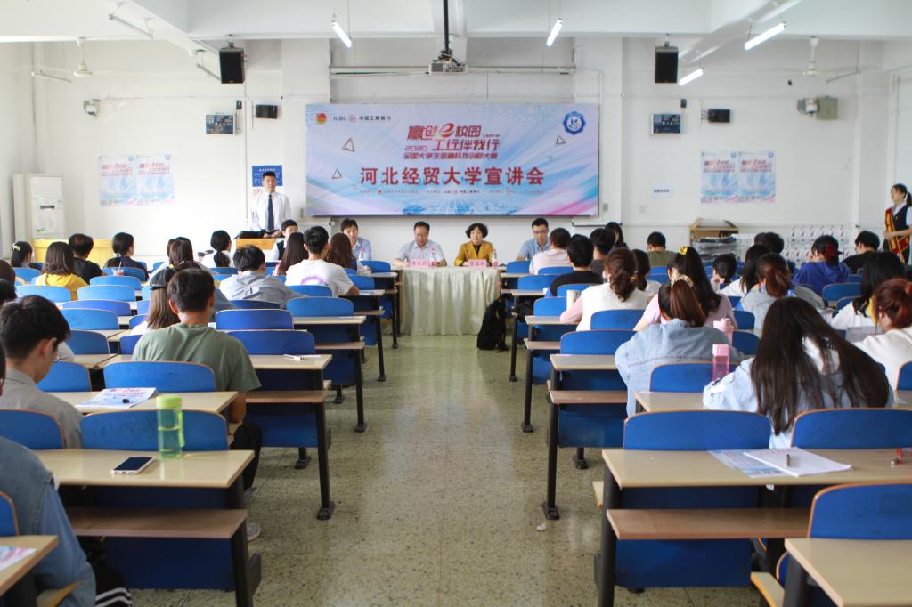 北三教b401教室成功举行。中国工商银行石家庄分行金融科技部总经理李文利、副总经理杜青、天翼支行副行长刘艳丽莅临此次宣讲会。河北往贸大学 abw087