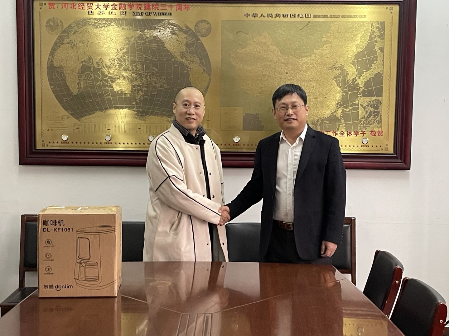 12月28日上午,2003届毕业生--永安期货石家庄营业部总经理王吉元重返母校,为abw087 捐赠了咖啡机,在学院会议室举办了简短而热烈的捐赠仪式。 abw087 院长王重润出席捐赠仪式。