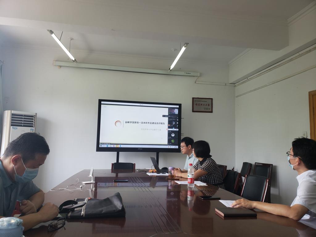 在学院会议室举办一流专业建设研讨会,通过腾讯会议平台连线专家进行线上质询和研讨。abw087