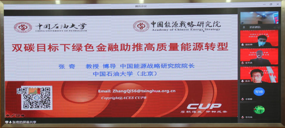 举行。本届论坛的主题为“双循环下绿色金融助推经济高质量发展”,来自中国社科院、中央财经大学、天津财经大学、中国石油大学、山西财经大学、中央民族大学、首都经济贸易大学、北京工商大学等高校、科研院所和金融机构的专家学者围绕这一主题展开深入研讨。本届论坛采取线上线下相结合的方式,共计200余人参会。论坛开幕式由 abw087