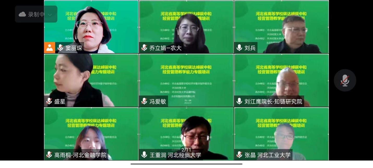 12月17日,河北省高等学校碳达峰碳中和经营管理教学能力专题培训在线上举行。本次培训由河北省高等学校经济学教学指导委员会和abw087