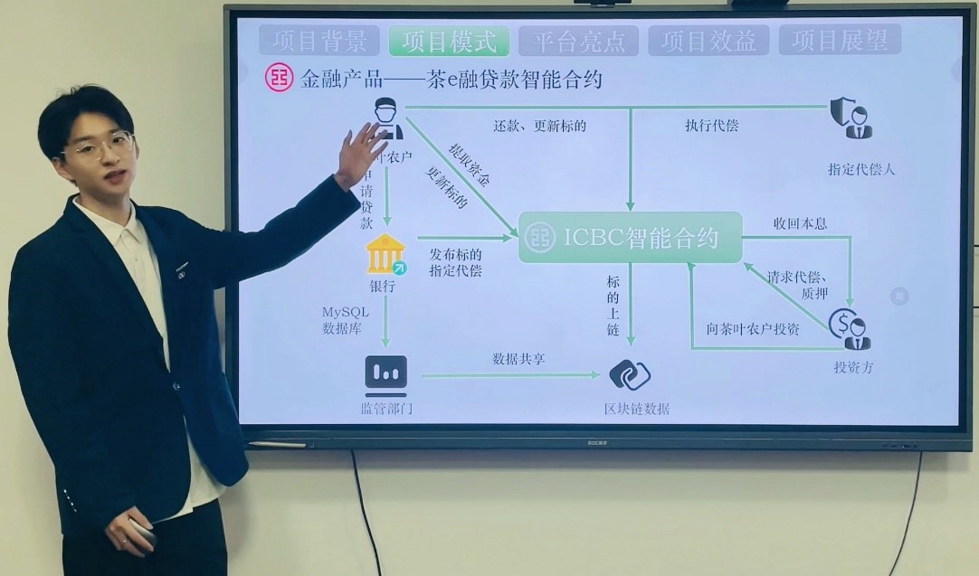4支队伍喜获佳绩。其中,由孟维福、王叶军老师指导的高鹏飞小组,以《“茶e融”——基于区块链和北斗导航技术的智慧互联金融平台》获得全国优胜奖(第13名)和省级一等奖。由王叶军、武彤彤老师指导的李心怡小组,以《“精e通”——面向高净值人群提供精准化金融服务方案》获得省级三等奖。孙玮老师指导的刘治慧小组,以《“Student金豆兜”——大学生衣食住行场景金融研究》获得省级优秀奖。辛兵海、王晓翌老师指导的张松颖小组,以《ESG风险实时监测系统》获得省级优秀奖。
