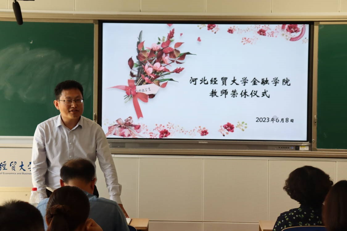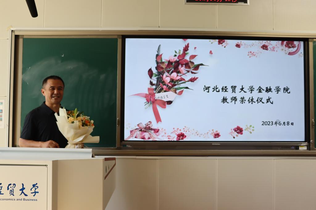 仪式在金融学专业学生的歌声中拉开帷幕,两位退休教职工从业以来勤勤恳恳,爱岗敬业,无私奉献,用心教书,用爱育人,深受师生的敬爱。