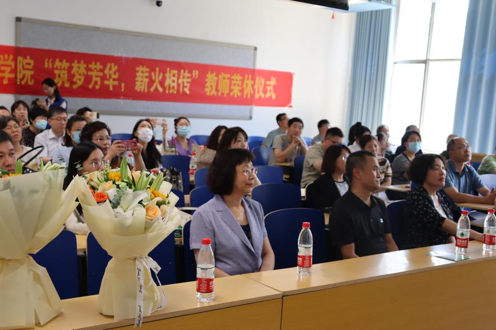 退休教职工荣休仪式在三教A104举行,学院全体教师及部分学生代表参加,荣休仪式由学院党委书记贾喜环主持。