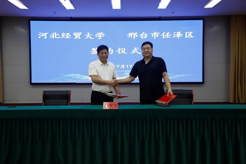 与邢台市任泽区人民政府举行战略合作协议暨项目合作协议签约仪式。校党委书记刘兵出席并讲话,校党委常委、副校长杨金田,校党委常委、副校长田学斌,科研处处长王素贞, abw087