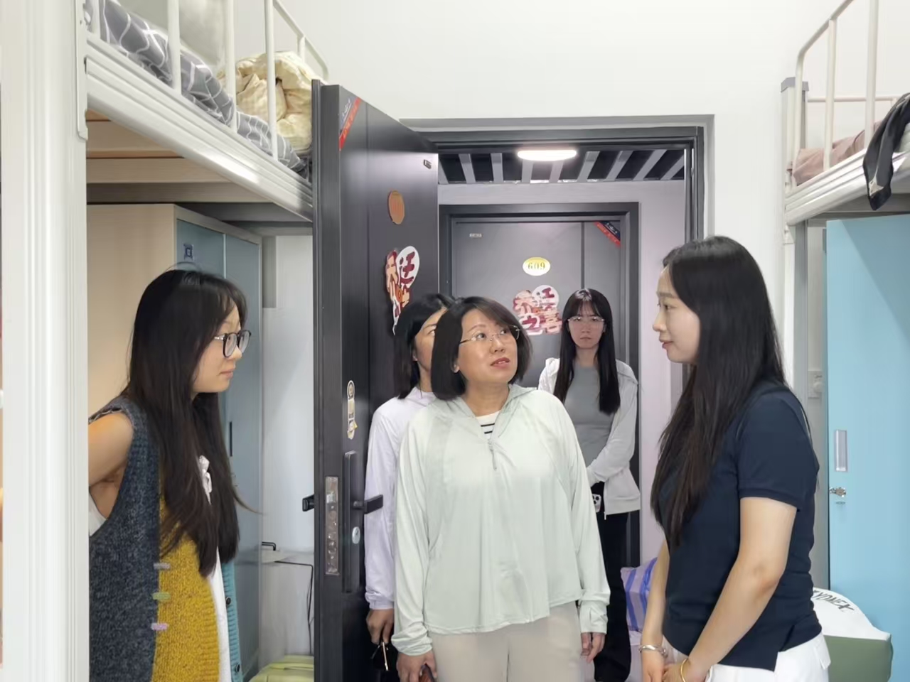 在宿舍搬迁工作圆满完成后,为进一步了解学生入住情况、帮助同学们尽快适应新环境,学院领导与研究生导师在宿舍整理期间深入走访,看望慰问正在收拾内务的同学们。老师们详细了解同学们搬迁后的生活安排与住宿感受,询问大家在新环境中是否存在困难,并鼓励大家保持良好心态,积极投入到接下来的学习与生活中。