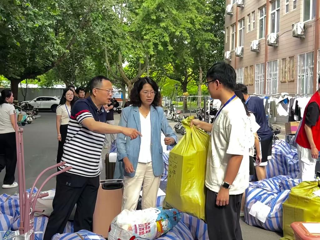 搬迁工作正值高温天气,学校领导时刻牵挂搬迁工作。校党委书记李晓华亲自带领相关部门负责人,深入搬迁现场和学生宿舍,为正在忙碌的师生们送上了清凉的饮用水。李书记一行亲切问候大家,详细询问搬迁进展,叮嘱同学们注意防暑降温、劳逸结合,并感谢所有参与搬迁工作师生的辛勤付出。一瓶瓶清水传递着学校的深切关怀,为炎热的搬迁日带来了一份清凉与感动,让“以学生为中心”的理念更加可感可及。