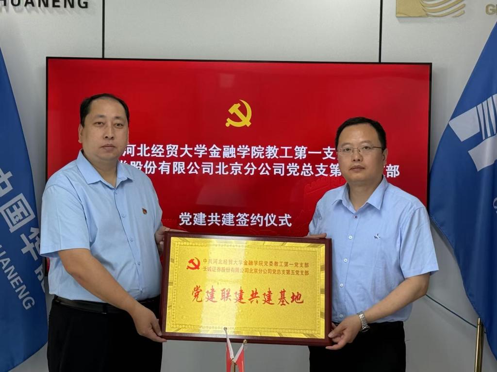 教工第一支部与长城证券北京分公司党总支第五党支部,联合开展党建共建活动,双方签署共建协议并举行授牌仪式,长城证券石家庄营业部总经理车凯磊、总经理助理闫红亮、机构业务部总监杜胜海、合规部经理蒋玉莲, abw087