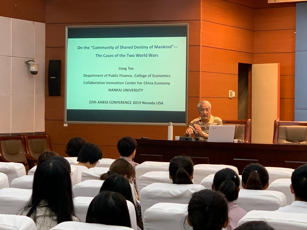 邀请南开大学陶江教授、博导在会议中心视频会议室进行了题为《人类命运共同体的经济学原理及两次世界大战案例分析》的学术报告。报告会由 abw087
