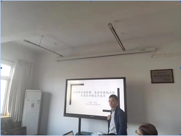 会议室举行。主讲人是北京大学经济学院金融学博士、武汉大学经济与管理学院金融学博士后杨威老师,本次讲座的题目是分析师乐观语调、盈余价值相关性与资本市场定价效率。 abw087