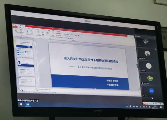 院长李建军教授作题为“重大突发公共卫生事件下银行科技金融绩效”的线上学术报告。 abw087