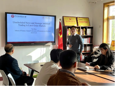 迎来了第四十八期融道论坛。本期融道论坛以“Unscheduled News and Stragegic Informed Trading in Limit Order Markets”为主题,由首都经济贸易大学 abw087