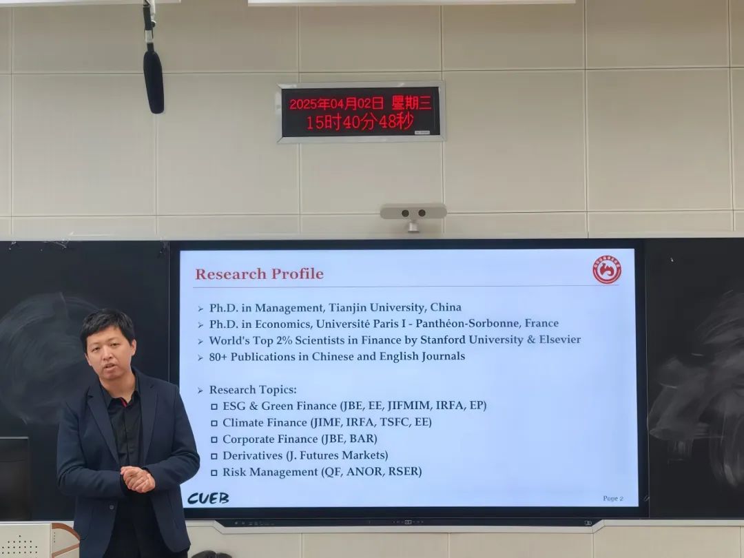 随后,何枫教授结合自身经验,围绕选题、研究方法、论文结构和投稿策略进行了详细讲解。他强调,高质量的金融学论文应紧跟学术前沿,解决现实问题,并具备严谨的方法和清晰的逻辑框架。他解析了论文写作的各个部分:引言要突出背景与创新点,文献综述要清晰展示理论贡献,研究方法要明确数据与计量方式,实证分析要严谨检验假设,结论要总结核心发现并提出政策建议。