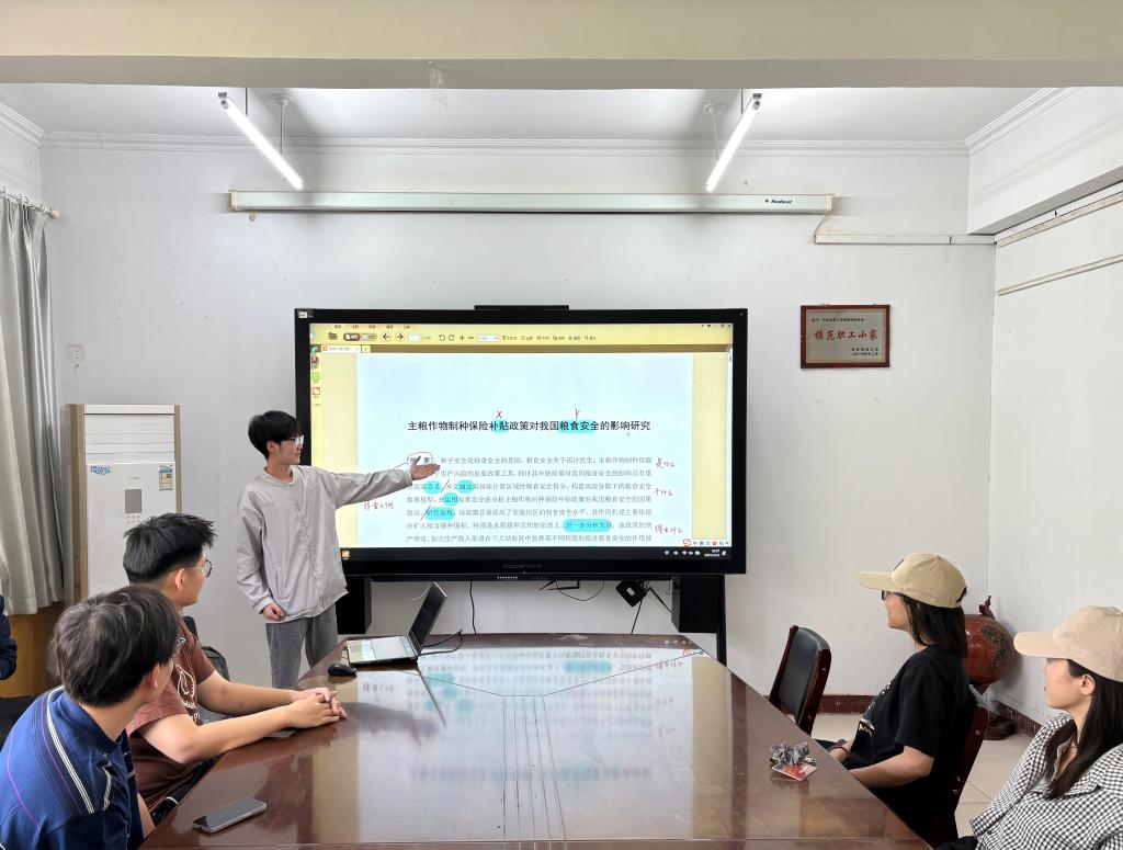 在三办党务会议室举办第五十七期融道论坛研究生沙龙活动。本期论坛由赵子龙同学主讲,分享主题为《主粮作物制种保险补贴政策对我国粮食安全的影响研究》,十余名研究生参加。