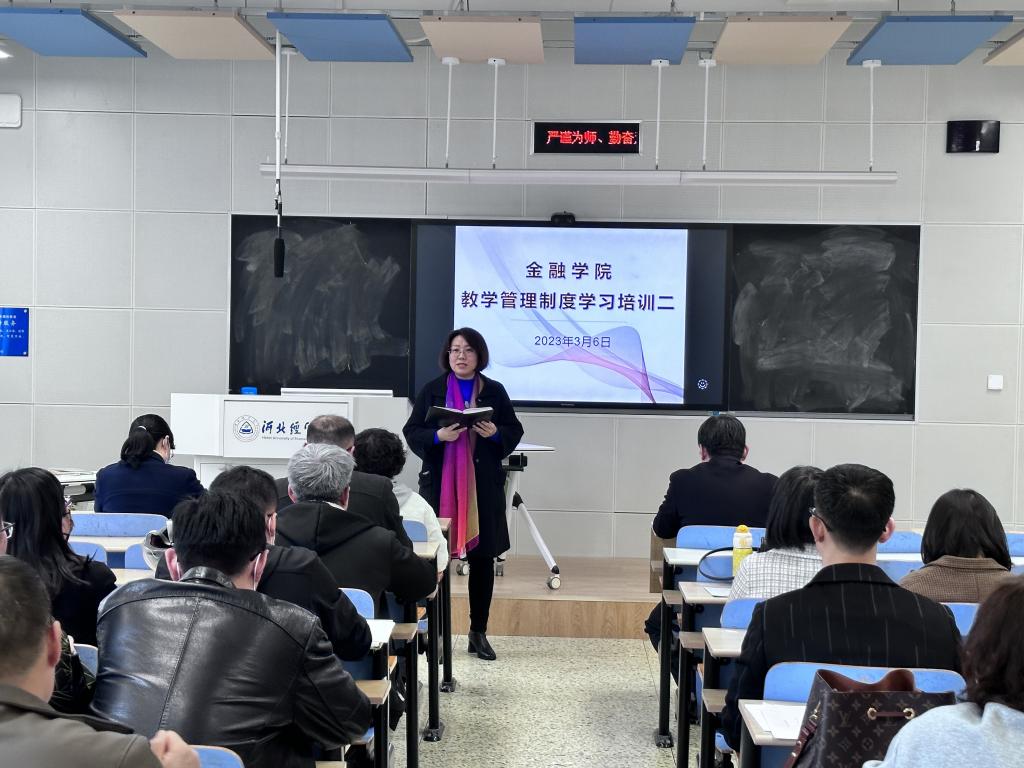 此次培训会是学院教学管理制度学习系列的第二次培训,是学院落实学校第三次党代会精神,严肃教学纪律,规范教学过程,全面提高教学与人才培养质量的重要举措。