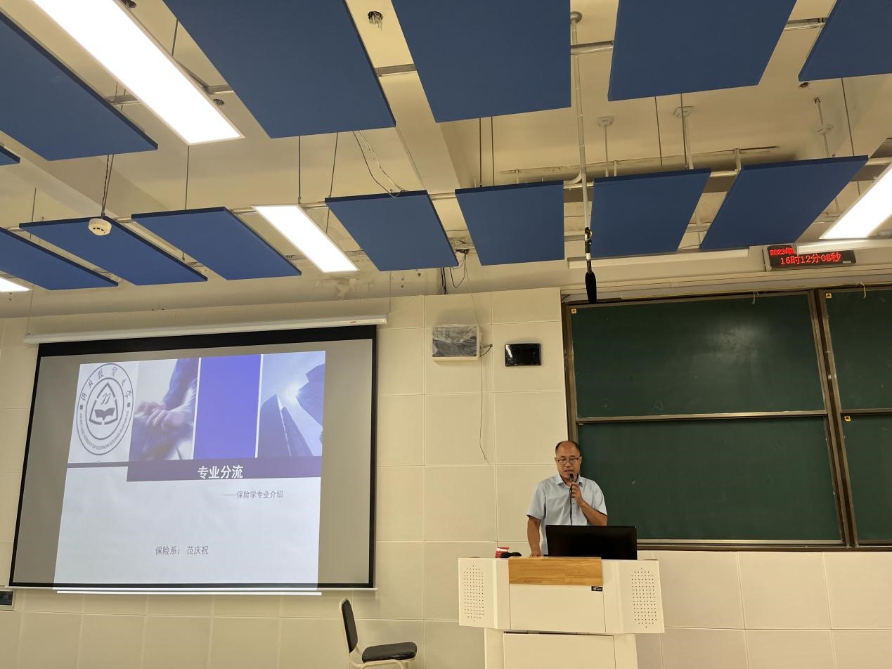 范庆祝首先对保险学专业进行介绍,并通过图表数据分析展示了往届保险专业学生就业、考公考研情况。曹琳结合自身工作经验系统介绍了金融学专业的发展前景、CFA的历史发展和当前社会对CFA人才的需求等同学们关注的内容。窦丽琛对金融学类专业分流的原则、专业设置和办法进行了讲解,对金融学CFA方向班进行了介绍。与会嘉宾针对学生们关于专业选择的问题逐一进行了详细解答。