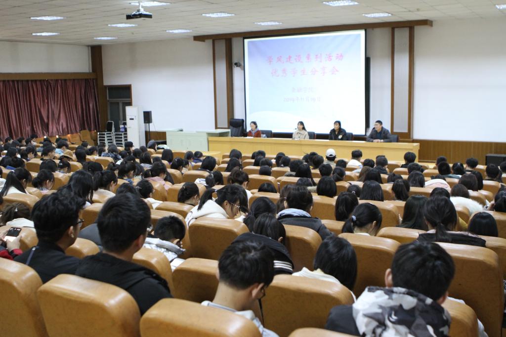 于第三教学楼C201举办学风建设系列活动之优秀学生分享会,团委书记李德海主持,2019级全体同学参加活动。