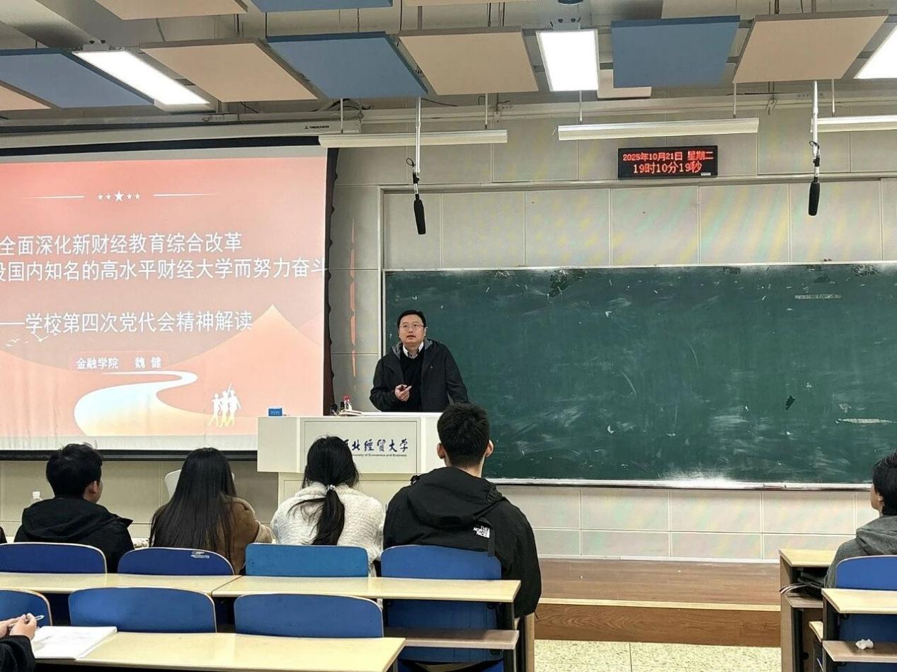 20251021日, abw087 党委书记魏健讲授场主题为“全面深化新财经教育综合改革,为加快建设国内知名的高水平财经大学而努力奋斗”的党课, abw087 100余名入党积极分子参与了此次党课。此次党课旨在深入解读学校第四次党代会精神,探讨如何在新时代背景下推进教育现代化,加快建设国内知名的高水平财经大学。