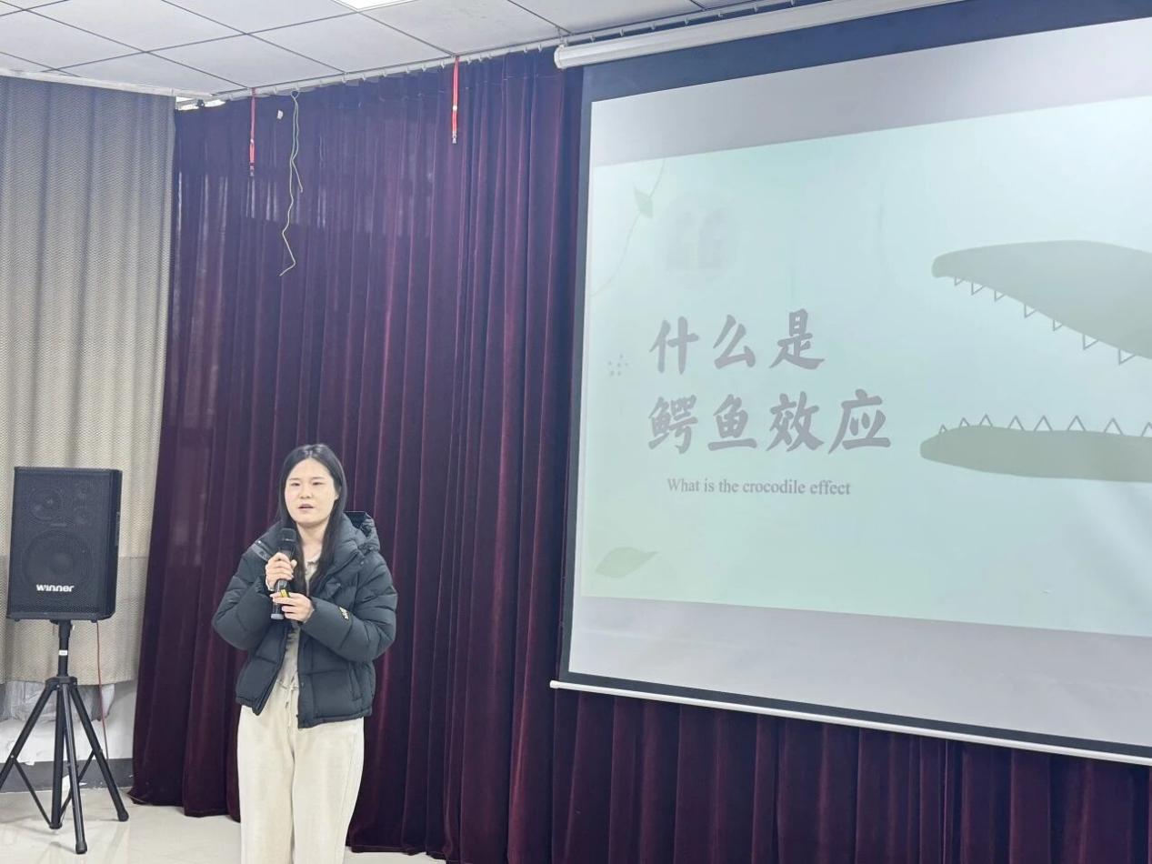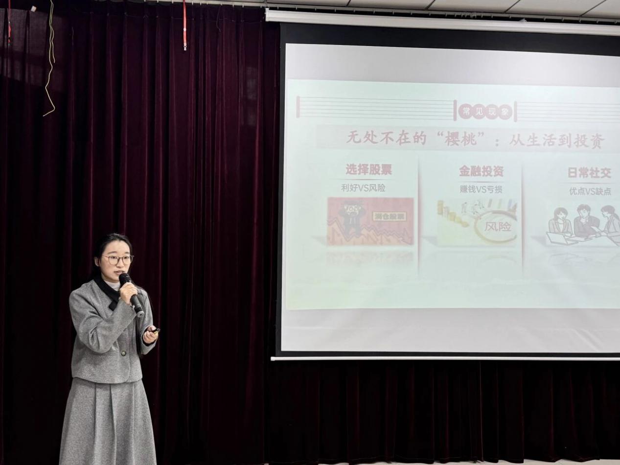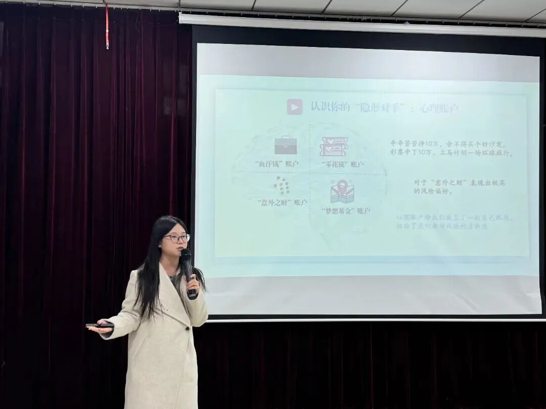 张可晴、刘雨欣和赵羽分享金融知识与反诈知识,石家庄学院经济管理学院学生100余人参加。