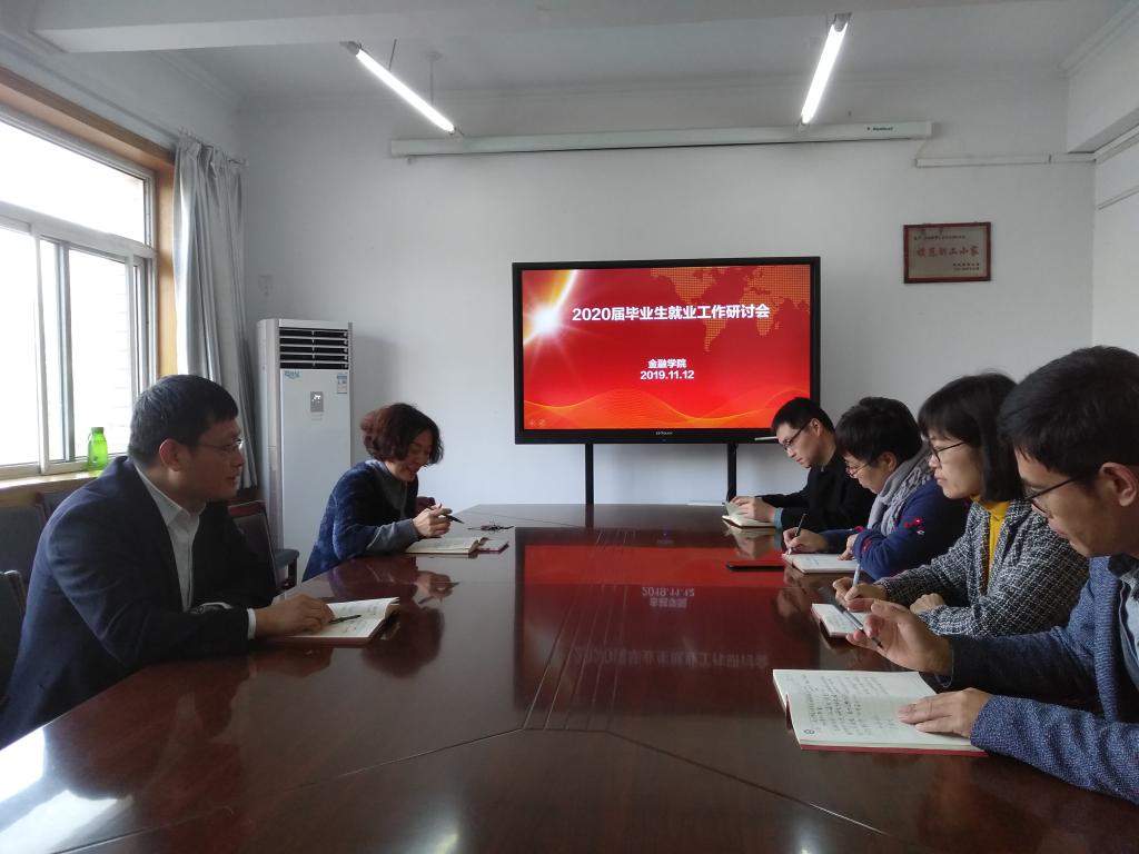 就业工作提出的指导意见对学院就业工作现状进行了总结反思,认为学院就业工作还具有较大的提升空间,学生就业率亟需提高。其次,会议还研究了当前整体就业形势以及金融行业发展现状,分析了促进学生就业工作的难点,进一步明确人才培养及就业指导服务工作的思路和方向。最后贾喜环总结强调,认为促进学生成长成才和顺利就业既是我们一切工作的“初心”也是我们育人工作的“使命”,我们要认真学习领会学校关于就业工作的指导意见,在就业工作中增强问题导向,树立大就业观和全员促就业的工作理念,使学院人才培养和就业指导服务做到精准施策,开创学院就业工作的新局面。